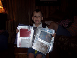 I want to thank everyone that sent him a post card for him to enter into the fair this year. He loved everyone of them. They had to be turned in yesterday and now the judging will begin. The judging happens before the fair that way who ever wins the ribbons will also be on display during the fair. I will find out if he won before the fair even starts because his sisters Great Grandmother will be working there again this year. At least I hope she will tell us if they win. Will have to wait and find out.